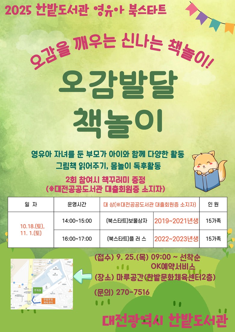 하반기 프로그램은 9월 25일(목)부터 한밭도서관 홈페이지에서 선착순 접수로 진행되며, 자세한 사항은 한밭도서관(☎042-270-7516)으로 문의하면 된다.