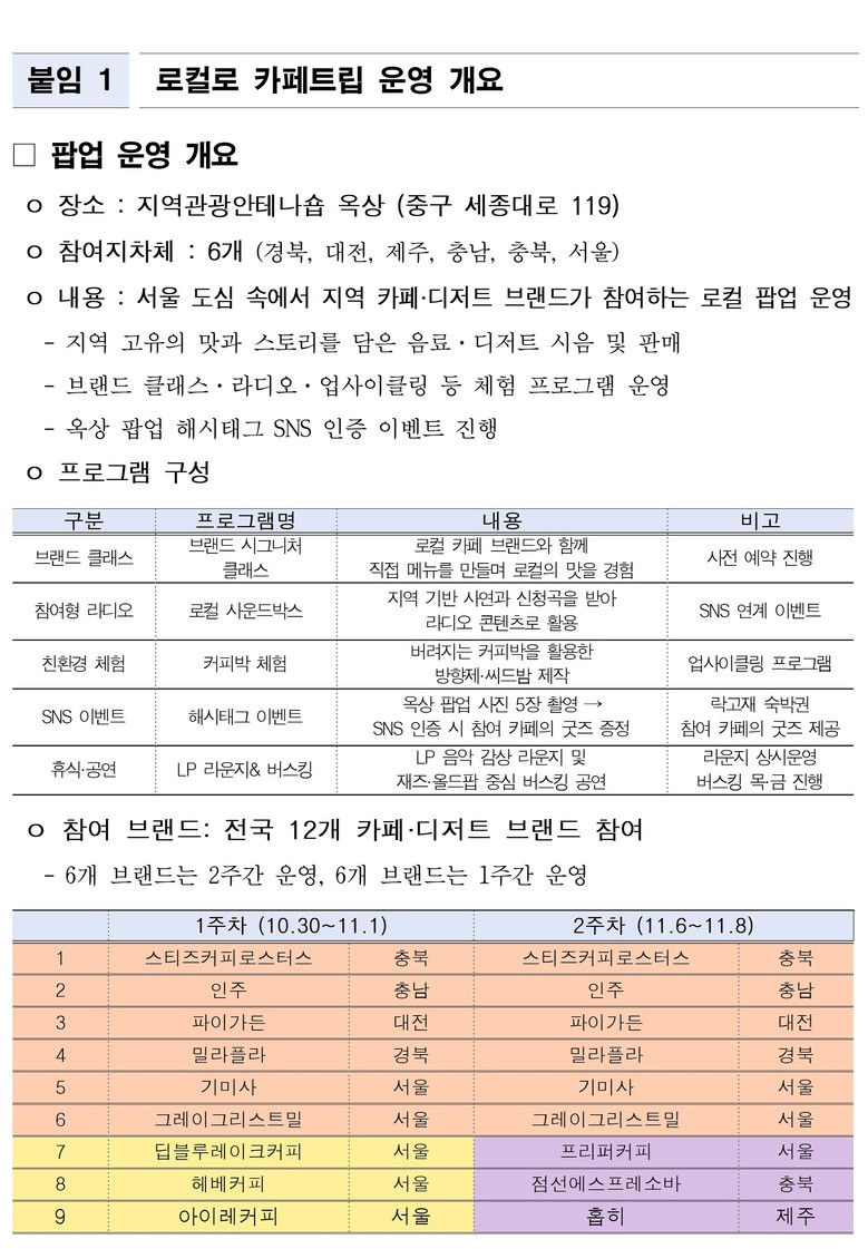 - 경북·대전·제주·충남·충북·서울 등 전국 6개 지역, 12개 카페·디저트 브랜드 참여