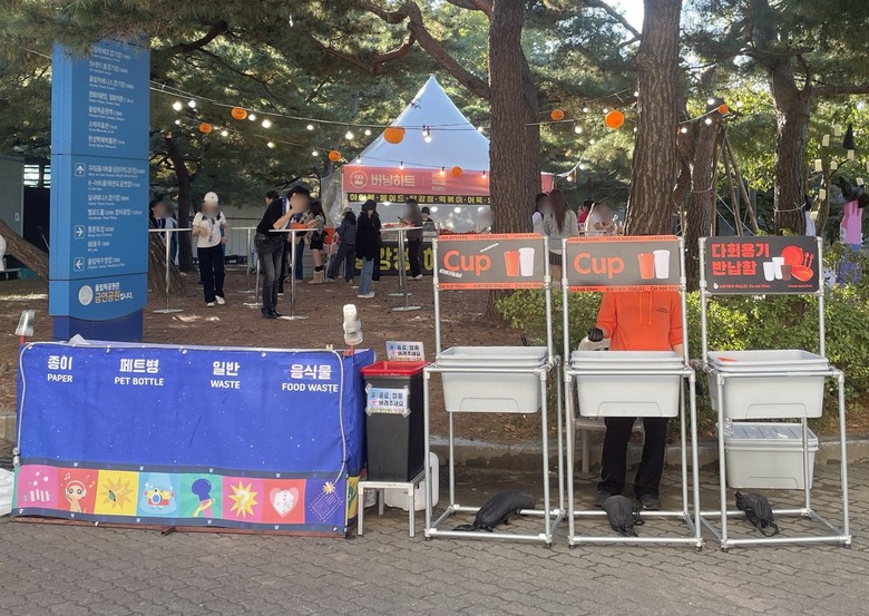 | ▲ 행사장 다회용기 수거함 및 분리배출 사진 |