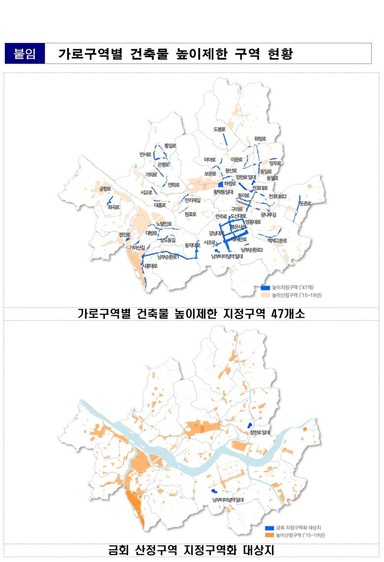 한병용 서울시 주택정책실장은 “주변환경과 조화를 이루는 도시경관 조성을 위해 1999년 도입된 가로구역별 건축물 높이를 시대 흐름과 변화된 사회적‧제도적 여건을 반영해 합리적으로 완화하고자 한다”라며, “높이제한 재정비를 통해 공간 이용의 효율성을 높이고 건축물 높이 관리를 체계적으로 개선해나갈 것”이라고 말했다.
