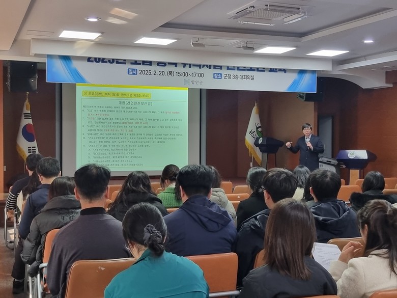 [함안군 세계타임즈=최성룡 기자] 함안군은 지난 20일 군청 3층 대회의실에서 도급·용역·위탁사업을 담당하는 관계자들을 대상으로 안전보건교육을 실시했다. 이번 교육은 중대재해처벌법 및 산업안전보건법에 따른 도급·용역·위탁사업 시 필수적인 안전보건 의무사항을 교육하는 자리로 마련됐다.