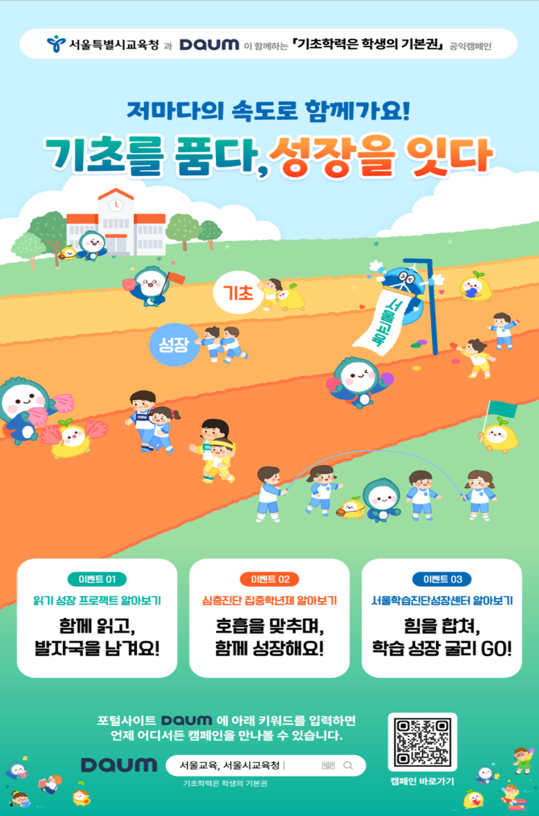 정근식 교육감은 “이번 캠페인이 서울형 기초학력 지원체계에 대한 시민의 관심을 더욱 높이는 계기가 되길 바란다”라며, “서울시교육청은 모든 학생이 자신의 꿈을 키울 수 있는 튼튼한 기초학력을 갖출 수 있는 협력적 교육 시스템을 구축해 나가겠다”라고 밝혔다.
