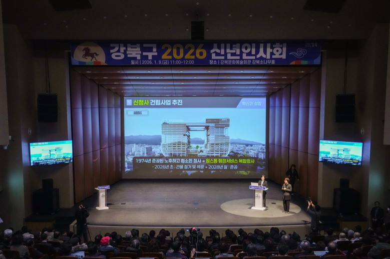 이순희 강북구청장은 신년사를 통해 “그동안 다져온 행정의 기반을 바탕으로, 2026년에는 구민의 일상 속에서 변화를 만들어가는 한 해가 되도록 하겠다”라며, 혁신과 성장, 상생과 복지, 자연과 웰니스, 문화와 경제를 중심으로 한 구정 운영 방향을 설명했다.