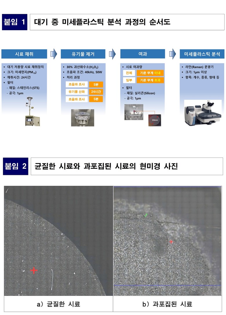이번에 개발한 기술은 대기 중 시료를 채취해 유기물 제거 및 여과 후, 라만 분광기를 활용해 미세플라스틱 개수와 종류를 분석하는 방식으로 대기 중 1㎛ 크기 작은 미세플라스틱 개수와 종류까지 정확하게 분석해 낼 수 있다.