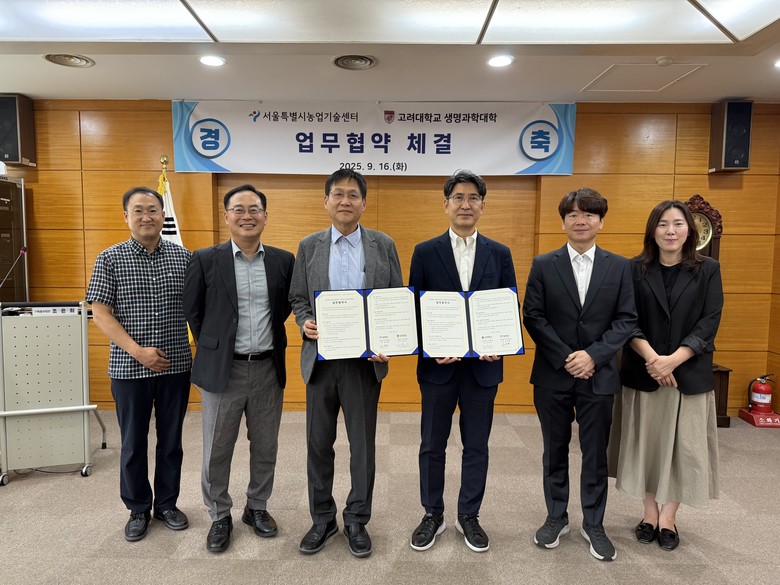 [서울 세계타임즈=이장성 기자] 서울시농업기술센터는 9월 16일(화) 오전 10시 센터 세미나실에서 고려대학교 생명과학대학과 치유농업 확산을 위한 「치유농업 분야 업무협약」을 체결했다고 밝혔다.