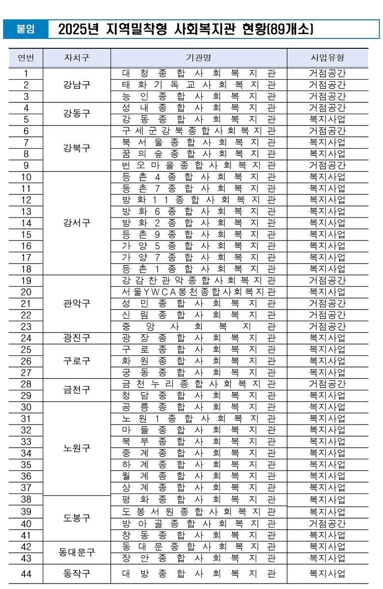 한편 서울시복지재단은 지난 5년간의 현장 경험을 공유하기 위해 8일(월) 오후 2시 커뮤니티하우스 마실(중구 명동11길 14)에서 ‘2025년 지역밀착형 사회복지관 실천공유회’를 개최했다.
