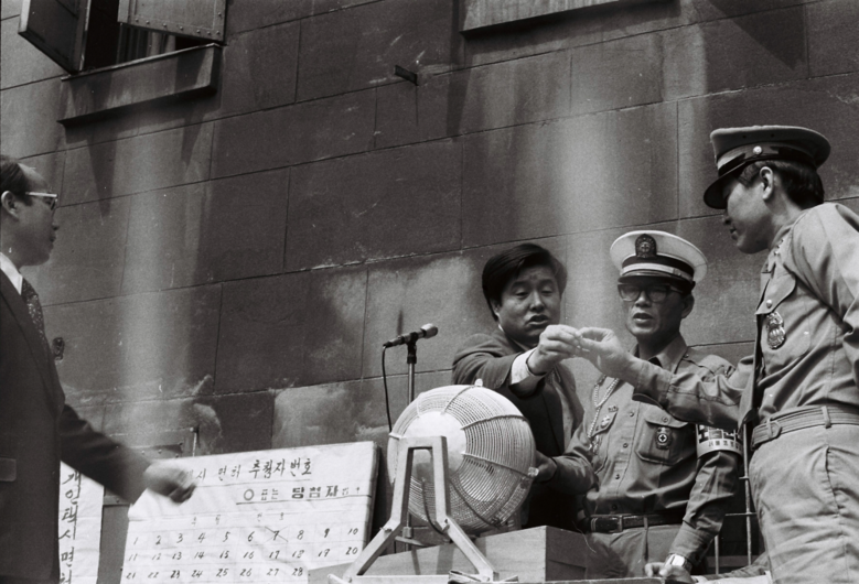 < 개인택시 면허번호 공개추첨제 현장(1970년대, 서울) >
