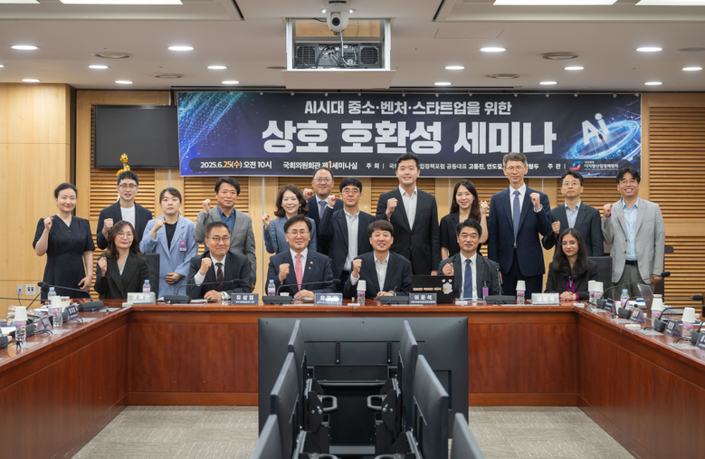 [세계타임즈]최성룡기자 = 국회 과학기술정보통신위원회 간사인 최형두 국민의힘 의원 ( 경남 창원마산합포구 ) 은 25 일 ( 수 ) 국회의원회관 제 1 세미나실에서 국회디지털산업정책포럼 공동대표인 고 동진 , 안도걸 , 이준석 의원과 함께 ‘AI 시대 중소 · 벤처 · 스타트업을 위한 상 호 호환성 세미나 ’ 를 개최했다 .