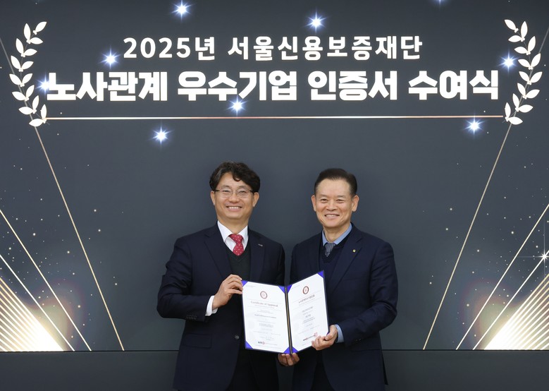 [서울 세계타임즈=이장성 기자] 서울신용보증재단(이하 ‘서울신보’)은 한국경영인증원(KMR)이 주관한 ‘2025년 노사관계 우수기업’ 인증 심사에서 3년 연속 인증을 획득했다. 이는 서울시 투자·출연기관 중 최초 사례로, 상생의 노사관계를 구축한 대표적 모범으로 평가받고 있다.
