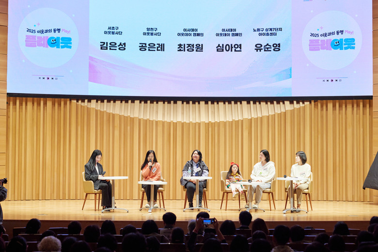 1부 ‘이웃봉사단 토크콘서트’에서는 이웃봉사단과 ‘이사데이 이웃데이’ 캠페인 참여시민, 어린이 봉사단이 활동했던 상계7단지 아이휴센터 센터장이 직접 무대에 올라 이웃과의 관계 속에서 경험한 따뜻한 변화 사례를 직접 이야기하며 참석자들의 깊은 공감을 이끌었다.