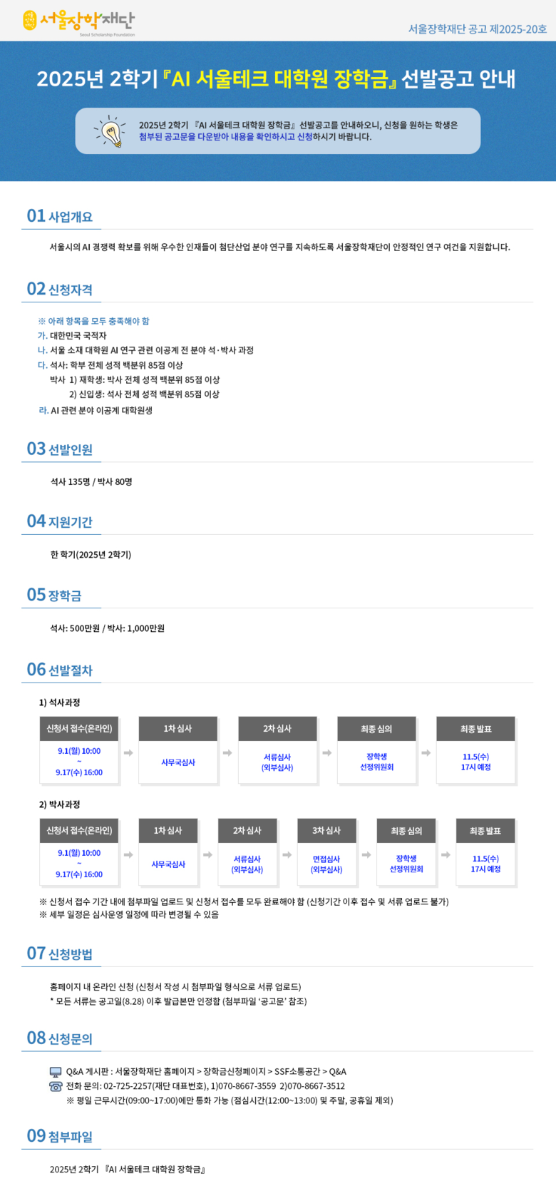 - 장학금 신청 9월 1일~17일 재단 누리집 접수, 11월 최종 합격자 발표 예정