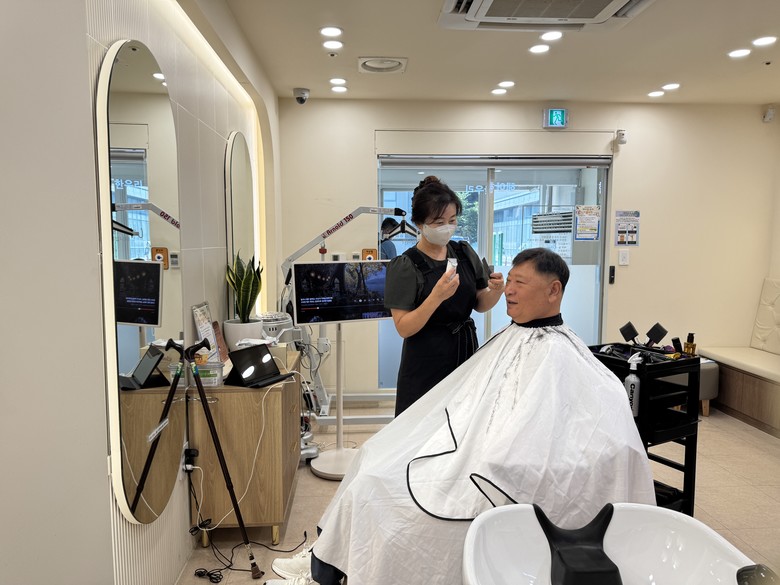 또, 20인치 이동식 모니터를 비치해 이·미용 서비스를 이용하는 동안 드라마나 유튜브 영상을 감상할 수 있도록 했으며, 밝은 조명과 따뜻한 인테리어로 단순한 미용 공간을 넘어 마음까지 힐링할 수 있는 공간으로 마련됐다.
