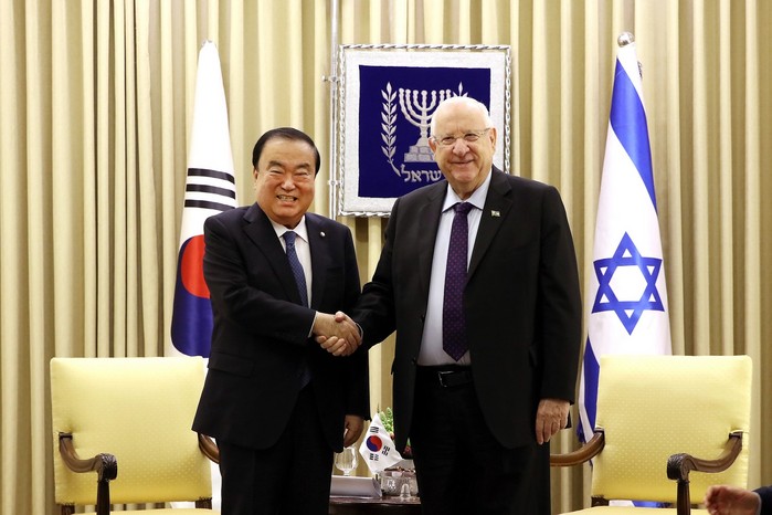 [세계타임즈 이채봉 기자]이스라엘을 공식방문 중인 문희상 국회의장은 현지시간 12월 23일(일) 오전 11시 예루살렘에 위치한 대통령궁에서 루벤 리블린(Reuven Rivlin) 이스라엘대통령과 만났다.