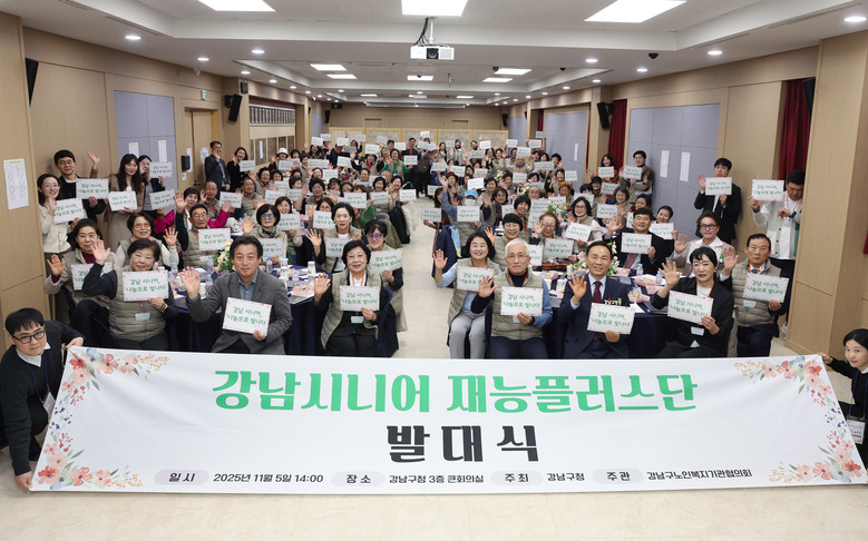 [강남구 세계타임즈=이장성 기자] 꿈이 모이는 도시, 미래를 그리는 강남구(구청장 조성명)가 지난 11월 5일 구청에서 ‘강남 시니어 재능플러스단’ 발대식을 개최했다. 이번 사업은 단순한 봉사활동을 넘어, 은퇴 후에도 사회에 지속적으로 기여할 수 있는 시니어의 역할을 재정립하고 전문 재능을 지역사회 자산으로 활용하는 새로운 모델이다.