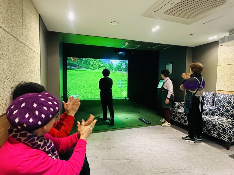 | ▲ 스크린파크골프를 즐기는 어르신들 |