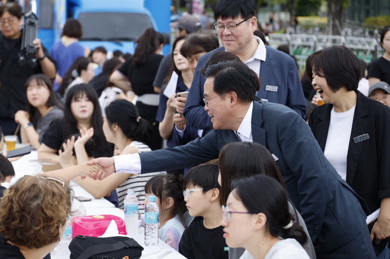 | ▲ 진교훈 강서구청장(가운데)이 13일(토) 마곡 일대에서 열린 ‘MCT페스티벌’을 찾아 시민들과 인사를 나누고 있다. |