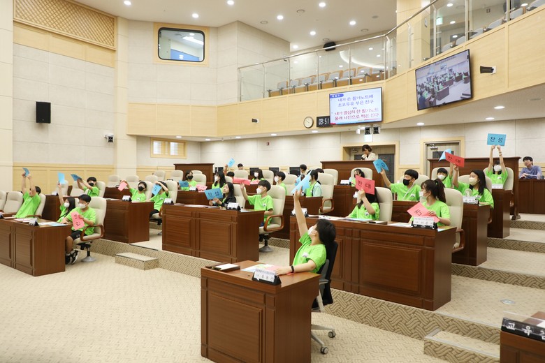본회의장에서는 학생들이 직접 시설을 견학하고, 민주주의 의사결정이 어떻게 이뤄지는지 표결 체험ㆍ의회 퀴즈 등에 참여하고, 발언대에서는 자유주제로 2분 발언도 경험했다.
