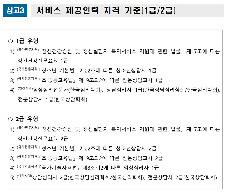 서비스는 제공 인력 자격에 따라 1급과 2급 유형으로 구분되며, 지원 단가는 1급 유형은 1회당 8만원, 2급 유형은 7만원이다.