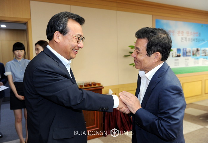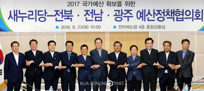 윤장현 광주광역시장이 23일오전 전라북도청 종합상황실 4층에서 '새누리당-광주광역시. 전라남도. 전라북도 '2016년 예산, 정책협의회'를 개최하였다.