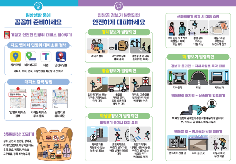 특히 안전하고 질서있는 훈련을 위해 유동 인구가 많은 지역과 민방위대피소 등에 공무원과 민방위대원 등을 배치해 훈련사항을 안내할 계획이다.