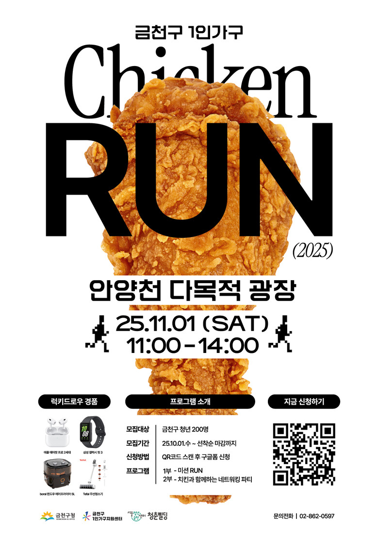 ‘치킨런’은 지난해에 이어 두 번째로 열리는 행사로, 올해는 청년 1인가구를 위한 맞춤형 소통 프로그램으로 새롭게 구성됐다.