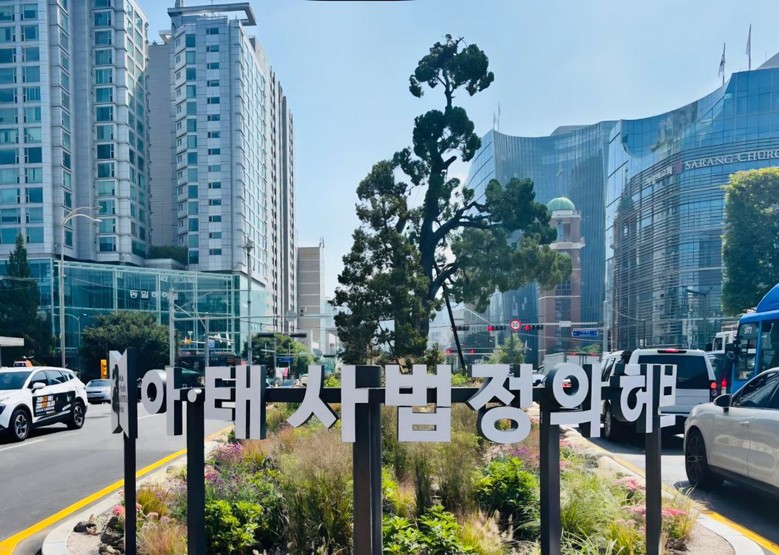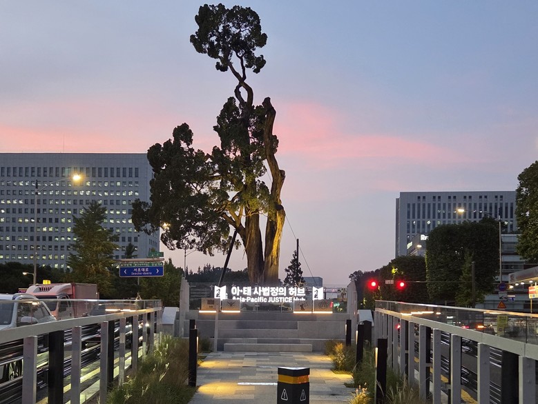 이와 함께 해당 공간은 아·태 사법정의 허브를 상징하는 곳으로 새롭게 꾸몄다. 법원·검찰·경찰·변호사협회 등 주요 법률기관의 CI 상징물을 설치하고 바닥에는 법률 명언을 새겨 자연스럽게 법과 정의의 가치를 체감할 수 있도록 했다. 상징공간에 더해 사계절 푸른 향나무와 어우러진 법조단지 경관은 주민과 방문객들에게 특별한 추억을 남기는 장소가 될 것으로 기대된다.