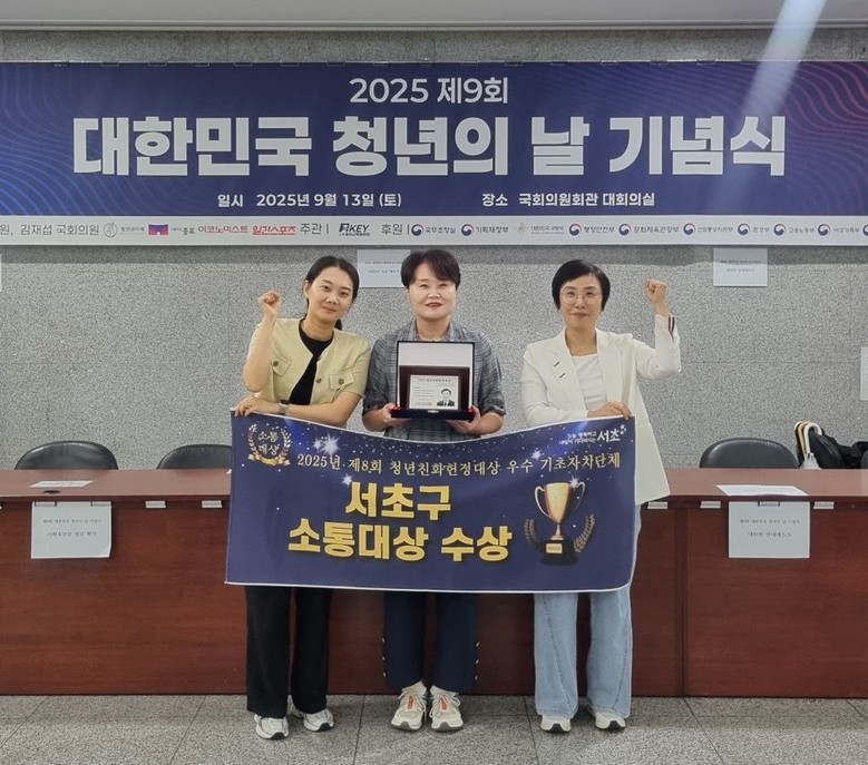 [서초구 세계타임즈=이장성 기자] 서울 서초구(구청장 전성수)가 13일(토) 국회사무처 소관 사단법인 청년과미래가 주최한 「제8회 청년친화헌정대상」 지방자치단체 부문 ‘소통대상’을 수상했다고 밝혔다.