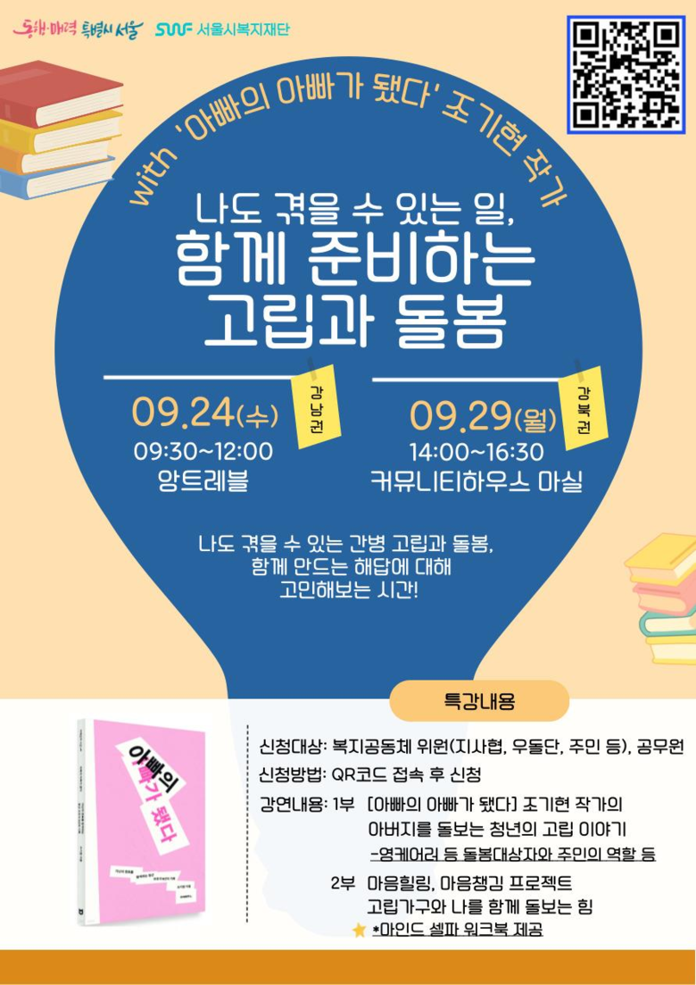 '함께하는 고립·돌봄' 특강, 29일 서울시 고립예방 민간 역량 강화