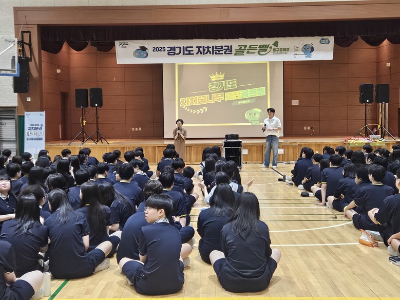 [남양주시 세계타임즈=송민수 기자] 동구중학교(교장 변수영)는 2025년 7월 17일 본교 체육관에서 2학년 재학생들을 대상으로 ‘2025 자치꿈나무 도전골든벨’을 개최했다.