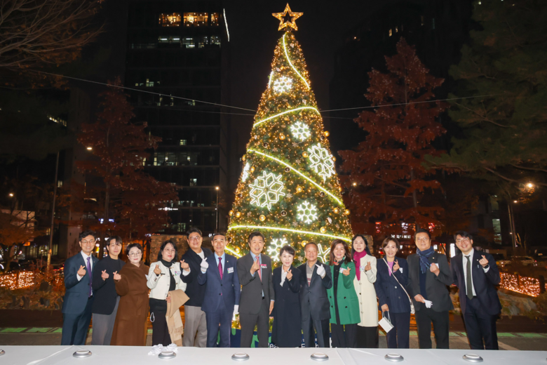 이날 행사는 구청 1층 로비에서 축하공연과 감사예배로 문을 열었다. 이어 구청 광장으로 이동해 성탄트리 점등식이 진행됐다. 이날 점등된 6m 높이의 대형 트리는 내년 1월 30일까지 매일 오후 5시부터 10시까지 구청 광장을 밝히며 희망의 메시지를 전달할 예정이다.