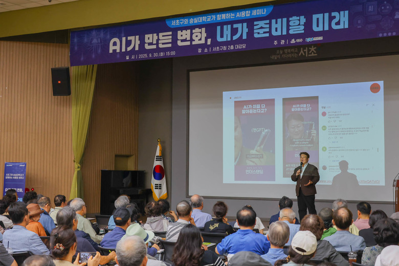 함께 강연에 참석한 전성수 서초구청장은 “이번 교육은 주민들이 AI를 단순히 도구로서가 아닌, 삶과 일에 변화를 가져올 중요한 기술로 인식하는 계기가 됐다”며, “앞으로도 서초구가 AI 교육 선도도시로 자리매김할 수 있도록 다각적인 노력을 이어가겠다”고 밝혔다.