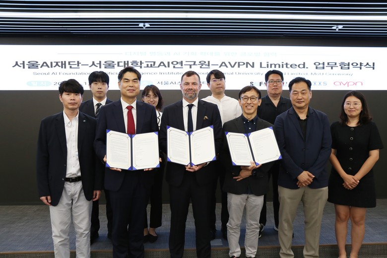 협약식은 서울AI재단 김만기 이사장, 서울대학교AI연구원 함종민 센터장, AVPN Tristan Ace 대외협력총괄(Chief Engagement Officer and Policy Head) 등 각 기관 주요 관계자들이 참석한 가운데 진행됐다.