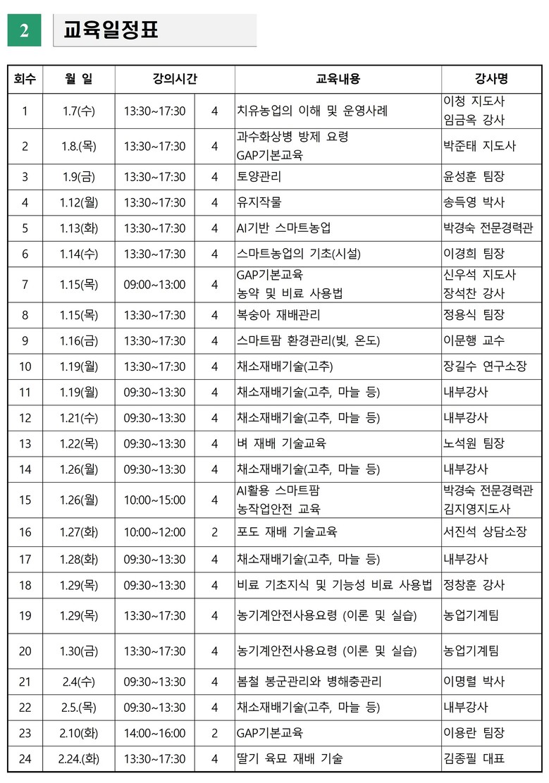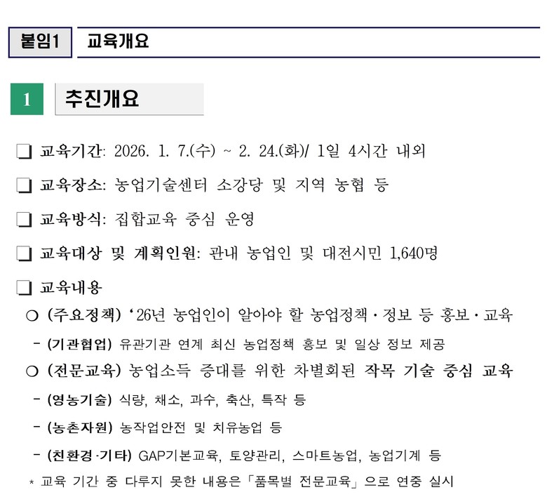 교육일정과 세부 내용은 대전광역시농업기술센터 홈페이지를 통해 확인할 수 있다.