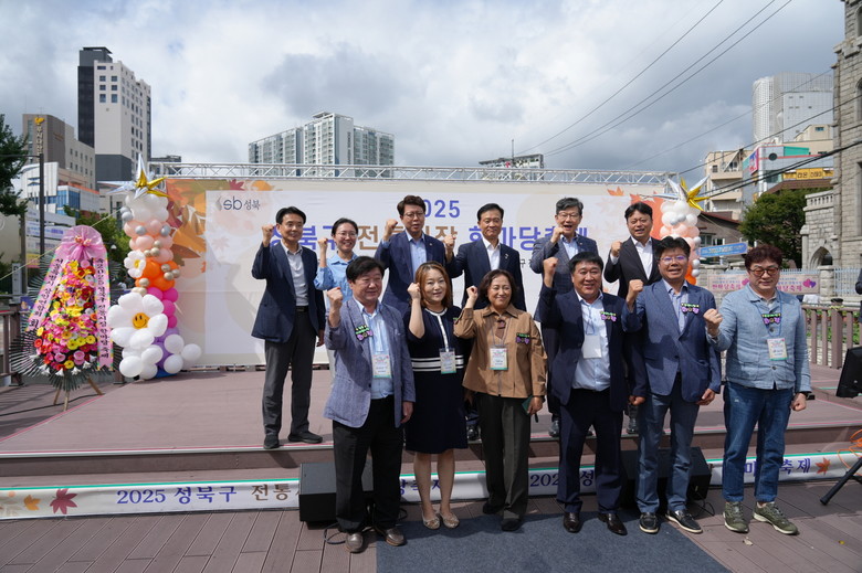 ▲ 전통시장 한마음 축제에서 이승로 성북구청장과 관계자들이 기념촬영을 하고 있다