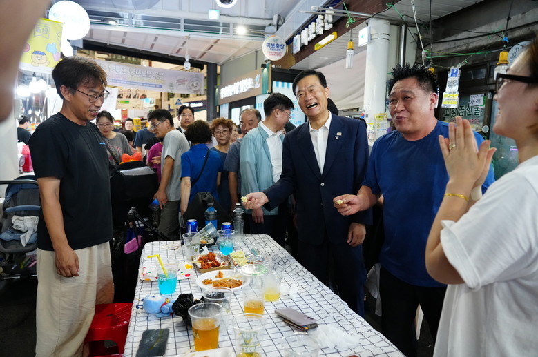▲ 이승로 성북구청장이 주민들과 함께 장위전통시장 주락이 맥주축제를 즐기고 있다