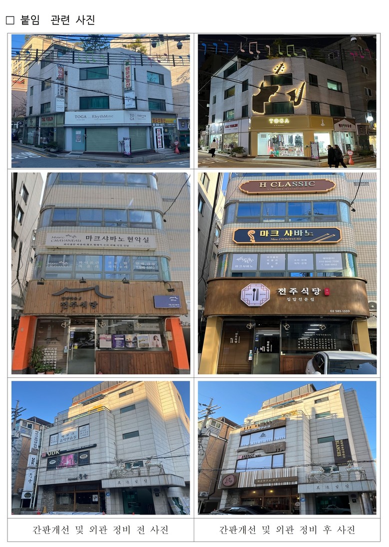 한편 서초구는 지난 10월 행정안전부 주관 ‘2026년 간판개선사업’에도 서울시 자치구 중 유일하게 선정된 바 있다. 앞서 ‘2025년 청년참여형 옥외광고 디자인 프로젝트’에 선정된 데 이어 올해 두 건의 간판개선 공모에서 연속 성과를 거두는 등 구의 간판정비 정책은 대외적으로 높은 평가를 받고 있다. 구는 현재 양재 말죽거리 94개 업소를 대상으로 간판개선사업을 추진 중이며, 앞으로도 서초 전역의 노후·불법 간판 정비를 통해 도시미관 개선과 지역 상권 활성화를 적극 도모할 계획이다.