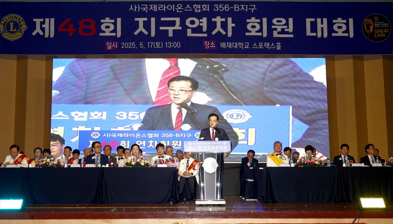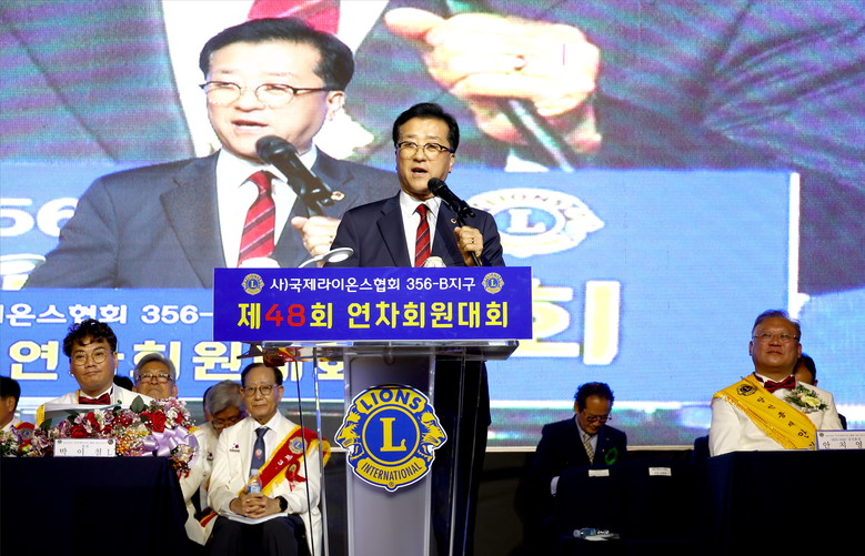 [대전 세계타임즈=이채봉 기자] 대전시의회 조원휘 의장은 17일 배재대학교(21세기관)에서 개최된 국제라이온스협회 356-B지구 제48회 연차회원대회에 참석해 그동안 지역사회를 위해 헌신과 열정을 다해온 박이철 총재의 노고에 감사를 표하고, 새로 당선된 안치영 총재의 취임을 축하했다.