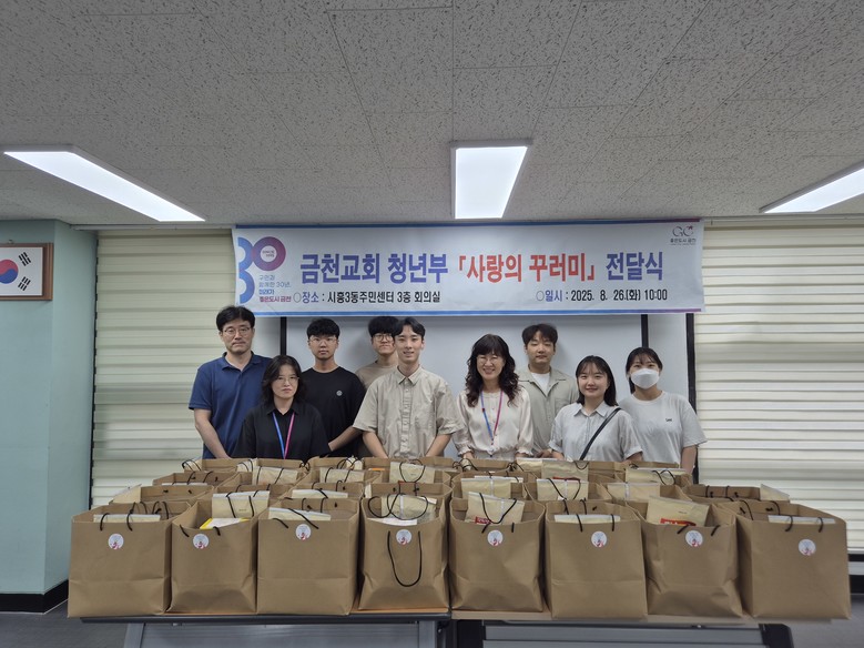 이날 금천교회의 조준영 전도사가 참석한 가운데 햇반 등의 먹거리와 생필품이 담긴 사랑의 꾸러미를 전달했다는 것이다. 이 꾸러미는 금천교회 청년부들이 기부금을 모아 꾸렸다.