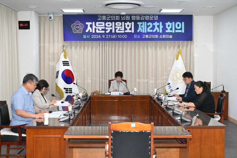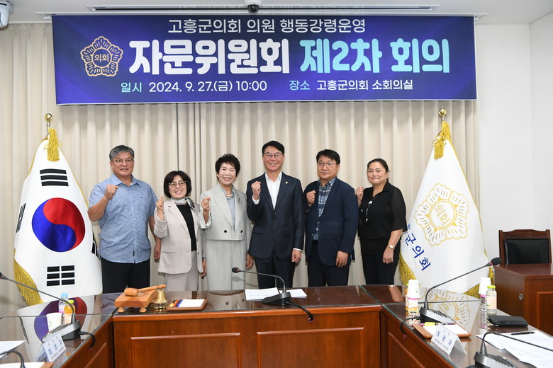 고흥군의회 의원 행동강령운영 자문위원회는 법조계, 언론계, 시민사회단체 등 7명의 자문위원으로 2024년 5월에 처음 구성되었으며 행동강령 운영과 관련한 공정성과 전문성을 갖춘 자문으로 의정활동의 투명성을 높여 군민들의 신뢰를 강화하는 데 앞장서 왔다.