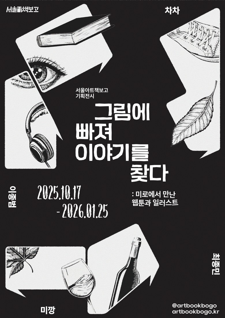 서울아트책보고에서는 10월 17일(금)부터 내년 1월 25일(일)까지 <그림에 빠져 이야기를 찾다 : 미로에서 만난 웹툰과 일러스트> 전시가 열린다. 미로 형태로 구성된 전시장에서 웹툰 ‘닥터 프로스트’의 이종범 작가를 비롯, 미깡, 최종민, 차차의 작품을 감상하며 관람객이 스스로 이야기를 만들어 가는 특별한 경험을 할 수 있다. 심리학적 내면 탐구부터 일상의 서정적 풍경, ‘팝 스트리트 아트’의 강렬한 색감까지 다양한 스타일의 작품으로 눈과 마음이 모두 즐거워진다.