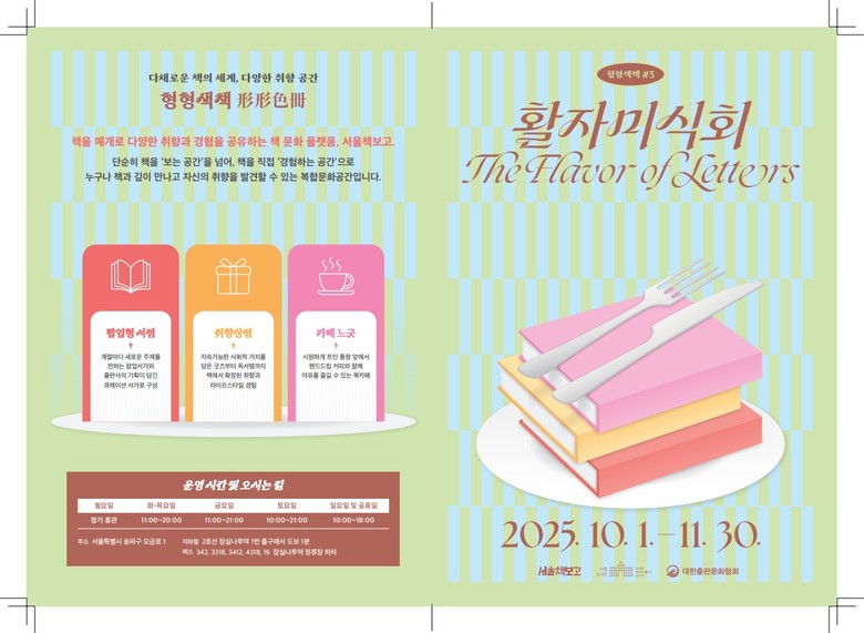 - 서울책보고 <활자미식회> (10.1.~11.30.), 34개 출판사·4개 지역서점 참여해 북토크, 전시