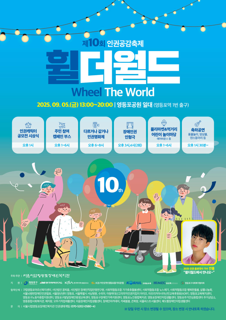 ‘휠더월드’ 행사는 올해로 10주년을 맞아 ‘모두 존엄하게 사는 삶, 모두의 인권’을 주제로 장애인과 비장애인이 함께하는 영등포구 대표 인권 축제로 자리매김했다.