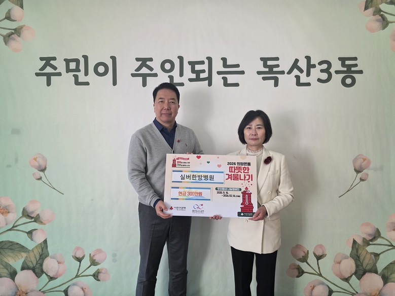 우선 실버한방병원(원장 최귀만)에서 지난 18일 독산3동 내 어려운 취약계층을 위한 이웃돕기 성금 300만 원을 기탁했다. 이 성금은 관내 취약계층의 생계·의료비 등으로 사용될 예정이다.