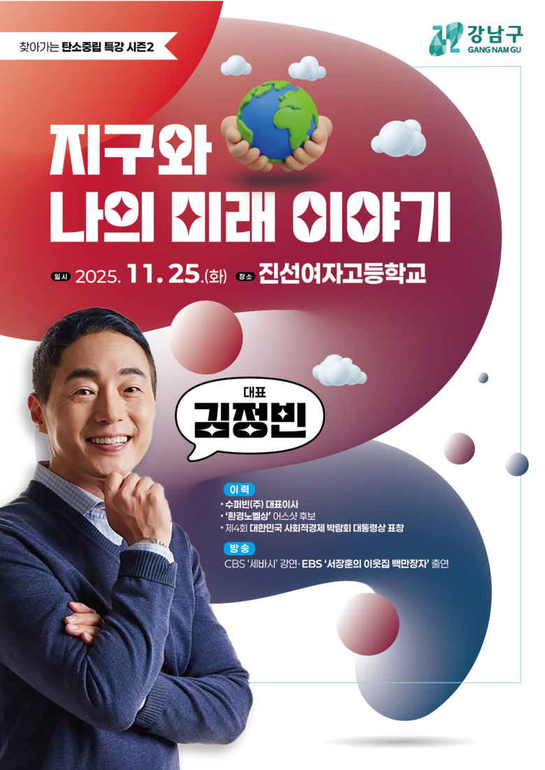 조성명 강남구청장은 “이번 특강은 환경에 대한 이해를 넓히는 동시에, 청소년이 자신의 미래를 함께 그려볼 수 있도록 구성했다”며 “앞으로도 청소년이 자연스럽게 공감하고 참여할 수 있는 지속 가능한 환경 교육을 확대해 나가겠다”고 밝혔다.