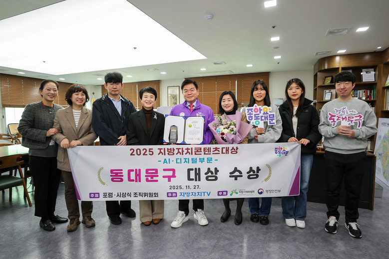 [동대문구 세계타임즈=이장성 기자] 서울 동대문구(구청장 이필형)는 지난 11월 27일 국회의원회관에서 열린 ‘2025 AI 지자체 성장 포럼 및 지방자치콘텐츠대상’에서 AI·디지털 부문 대상을 수상했다고 밝혔다.