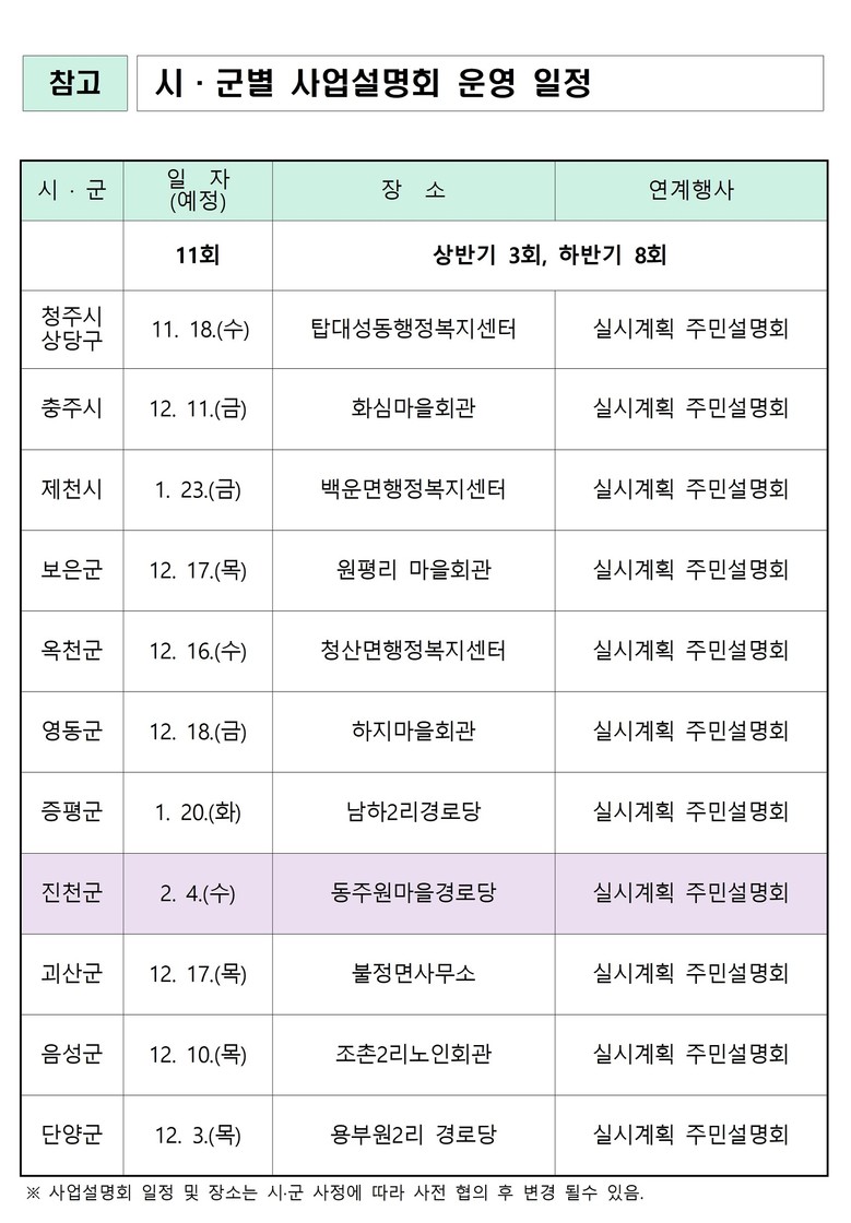 이번 설명회는 충북도와 진천군이 공동 주관한 가운데 한국국토정보공사, 마을주민 및 토지소유자가 함께 참석해 사업 추진 방향을 설명하고 주민들과의 현장 소통을 강화했다.
