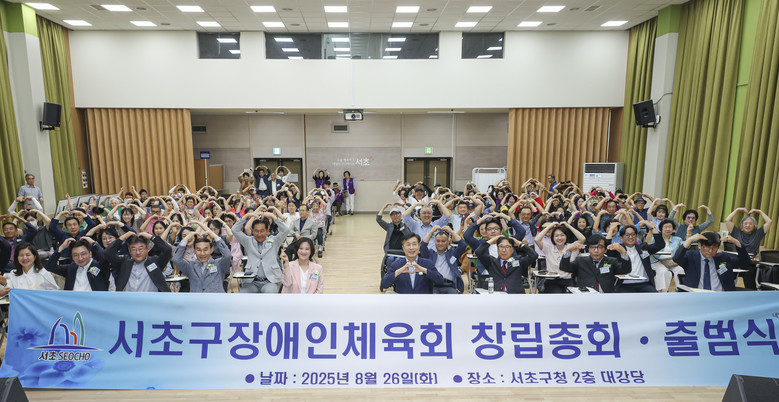 [서초구 세계타임즈=이장성 기자] 서울 서초구(구청장 전성수)는 8월 26일(화) 구청 2층 대강당에서 장애인의 건강한 삶과 체육 참여권 보장을 위한 첫걸음으로 「서초구장애인체육회 창립총회 및 출범식」을 개최했다고 밝혔다.