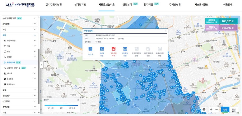 가장 눈에 띄는 변화는 ‘무장애 가게 현황 지도’다. 휠체어 사용자, 임산부, 어르신, 유아 동반자 등이 가게 접근성을 쉽게 확인할 수 있도록 경사로, 문턱, 테이블석, 장애인 주차장·화장실·승강기 설치 여부 등의 정보를 제공한다. 이를 통해 보행 약자의 일상생활 불편은 줄이고, 구의 점포 개선과 보행로 정비 등 생활밀착형 정책에도 활용될 예정이다.