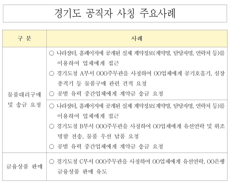 - 올 들어 3번째 경기도청 공무원 사칭 금전적 피해 사례