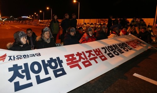 6명의 의원은 통일대교 남단에서 '천안함 폭침 주범 김영철 방한 철회하라'는 문구가 적힌 플래카드를 들고 2개 차선에 앉아 연좌 농성에 돌입했다.